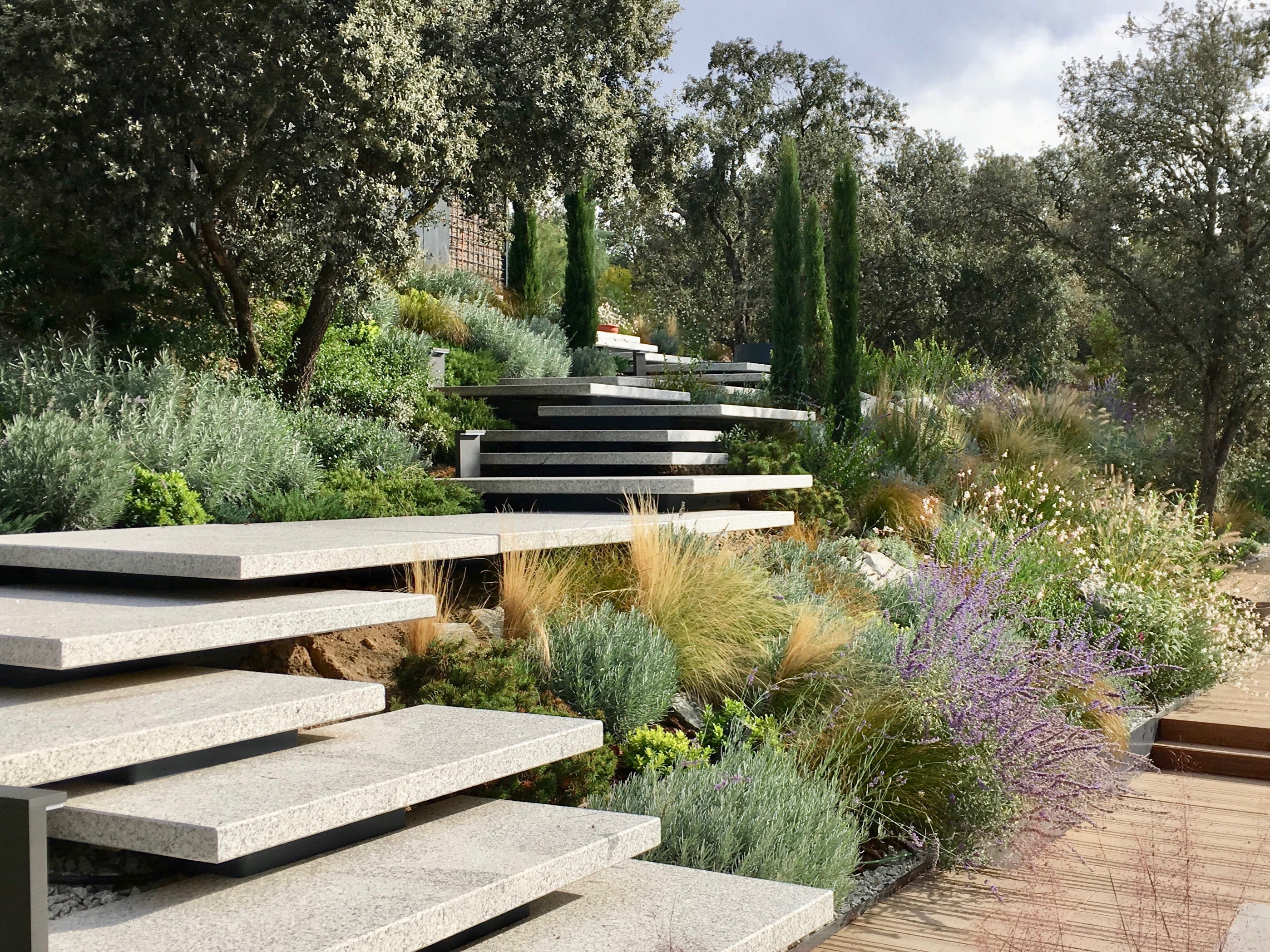 Conscientes del cambio climático y de la necesidad ecológica de gestionar mejor los recursos, nos enfocamos en una optimización del uso del agua a través de sistemas como riegos subterráneos, drenajes eficientes y la selección de plantas con bajas necesidades hídricas.